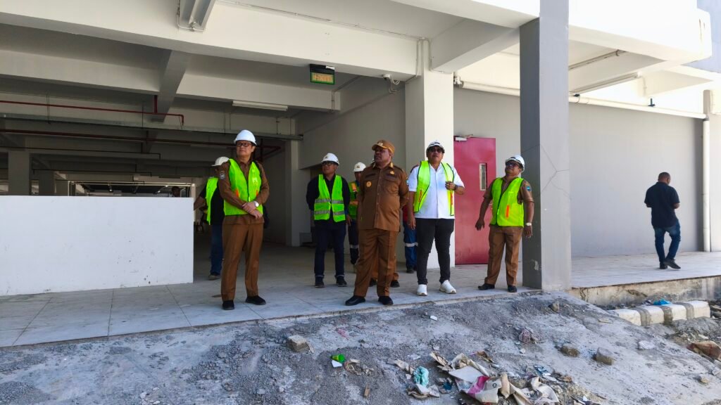 Bupati Hermus Indou, didampingi Kepala Dinas PUPR, Albertus, secara langsung mengecek proses pembangunan tahap II Pasar Sentral Sanggeng dan RTP Borarsi yang sedang berjalan.